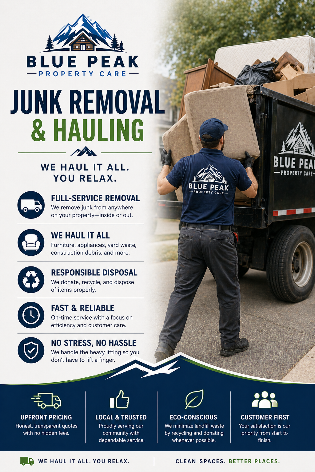 We provide reliable, full-service junk removal and hauling solutions designed to make clearing your space simple and stress-free. Whether you're dealing with old furniture, appliances, yard debris, or construction materials, our team handles the heavy lifting from start to finish.